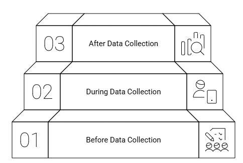 The data cleaning process is not one time task, it should start from from the planning stage by including constrains and validation measures in the data collection tools to mitigate some of the potential data errors. also during data collection we’ll need to run high-frequency-checks to identify data errors and communicate with the team for making corrective actions and at the end of data collection we’ll run in-depth checks and amend the changes to generate clean data.